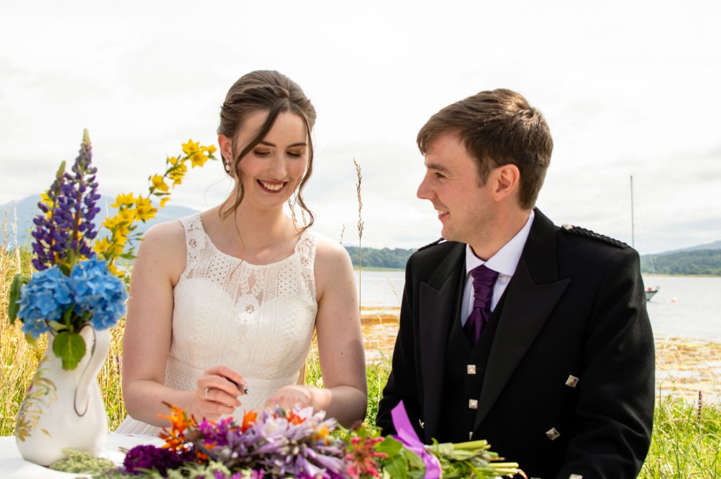 Covid made planning the wedding even harder because we live in the North East of England and were planning a wedding on the West Coast of Scotland. All the lockdowns and restrictions meant we couldn’t visit often and had to do a lot of planning remotely. It also meant that the few trips we did get to see Zoe’s family in Scotland often became overrun with wedding planning catch ups! Covid was always in the back of our minds too for restrictions on the actual day and made us question what we’d be able to have but we were determined to get married one way or another and so we just ploughed on and hoped for the best. It mostly worked out for us, which was brilliant!”