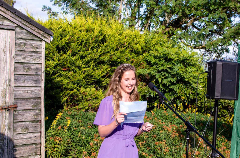 “We unfortunately weren’t able to have Zoe’s family who live abroad come over for the wedding so we Zoomed them in, another thing to work out since the whole wedding day was outside!”
