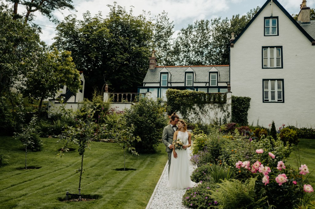 Larissa & Bastian stayed at The Albannach in Lochinver, a charming 200-year-old Highland guest house that sits at the edge of Scotland’s great wilderness. You can stand in the garden and see Suilven rising in the distance. It’s peaceful, thoughtful, and quietly luxurious, the perfect place to slow down before a wedding. The light in the accommodation was beautiful for prep photos and the garden made for a lovely moment of calm before we travelled to Achmelvich Bay for their ceremony.The Albannach team looked after them so well, and it’s a great base for couples planning a wedding or elopement in Assynt.