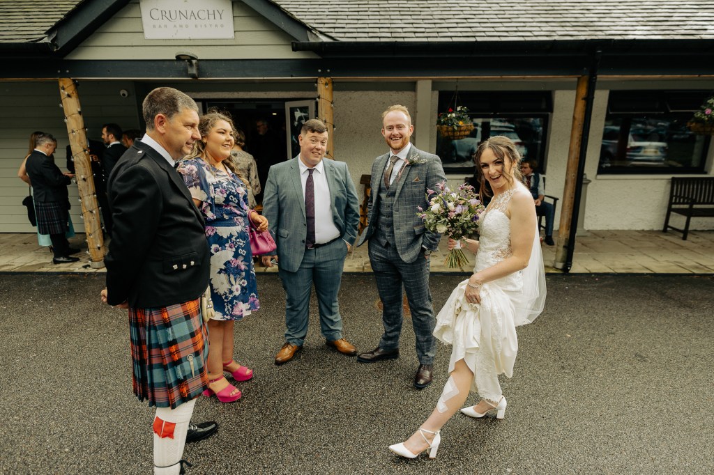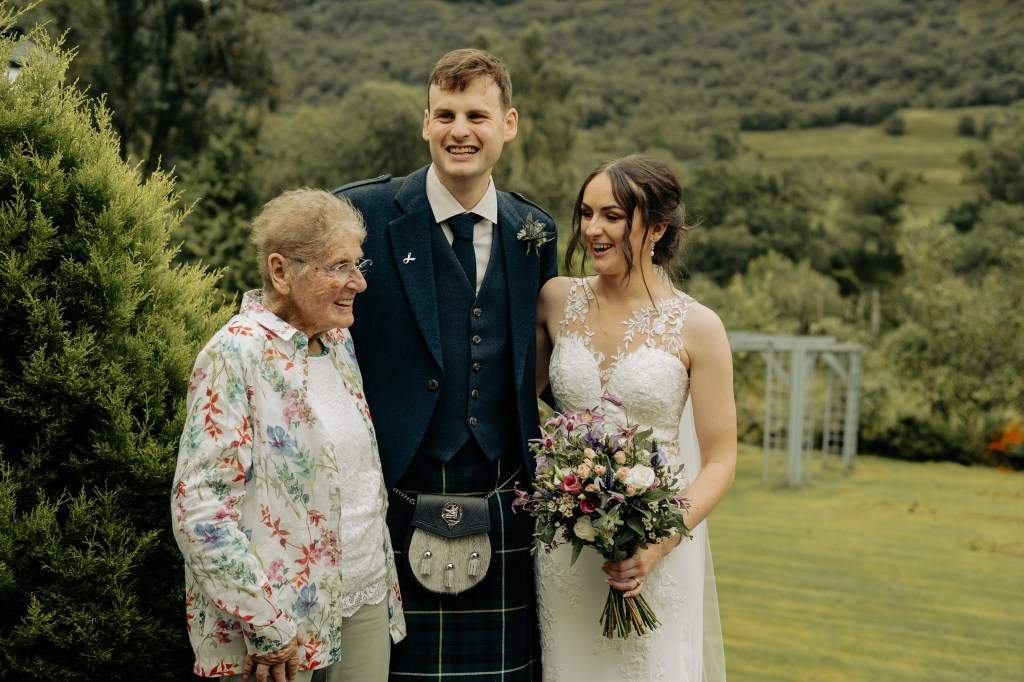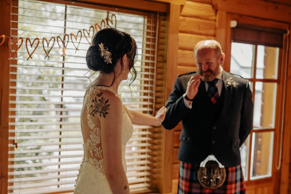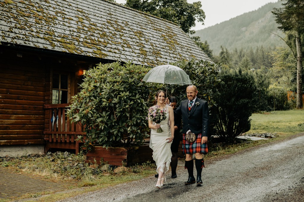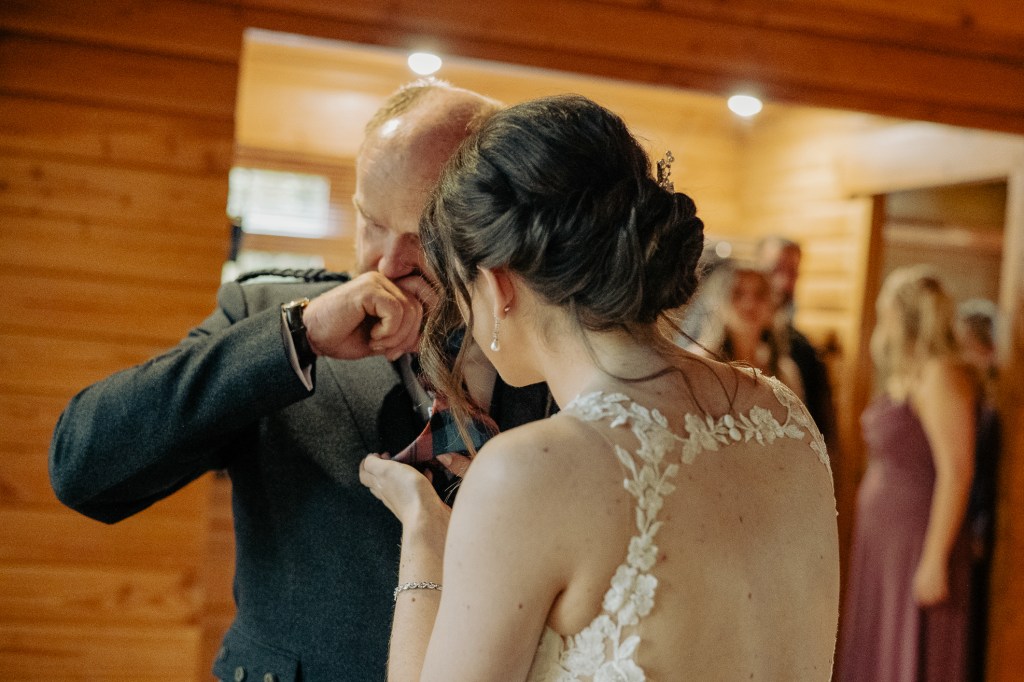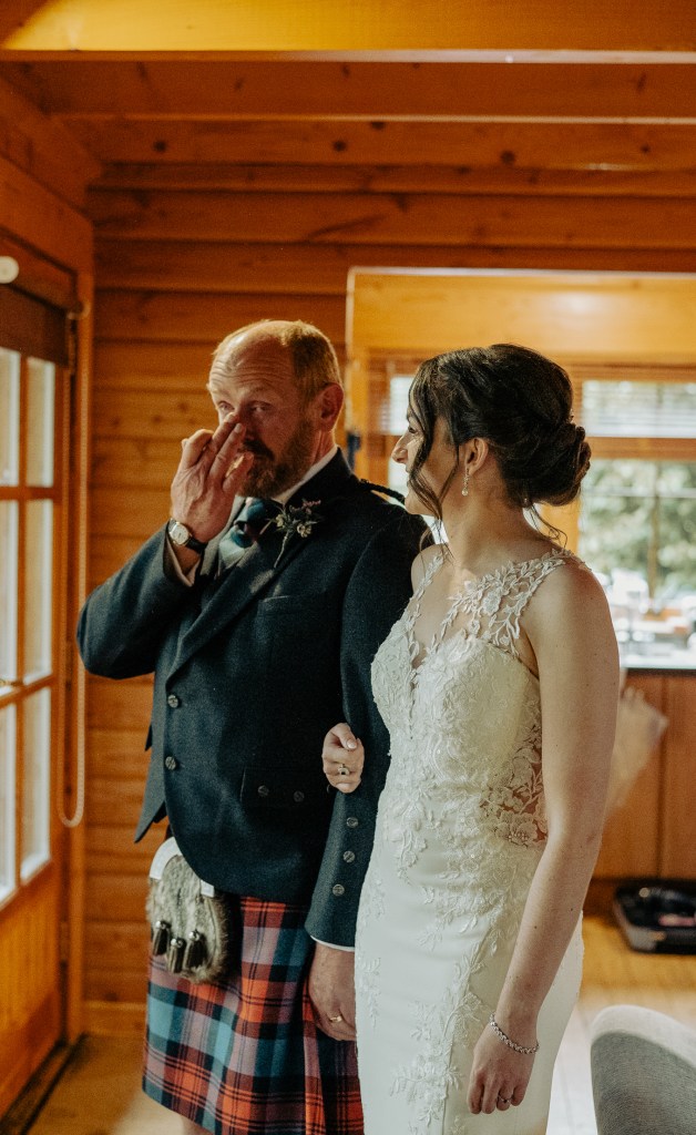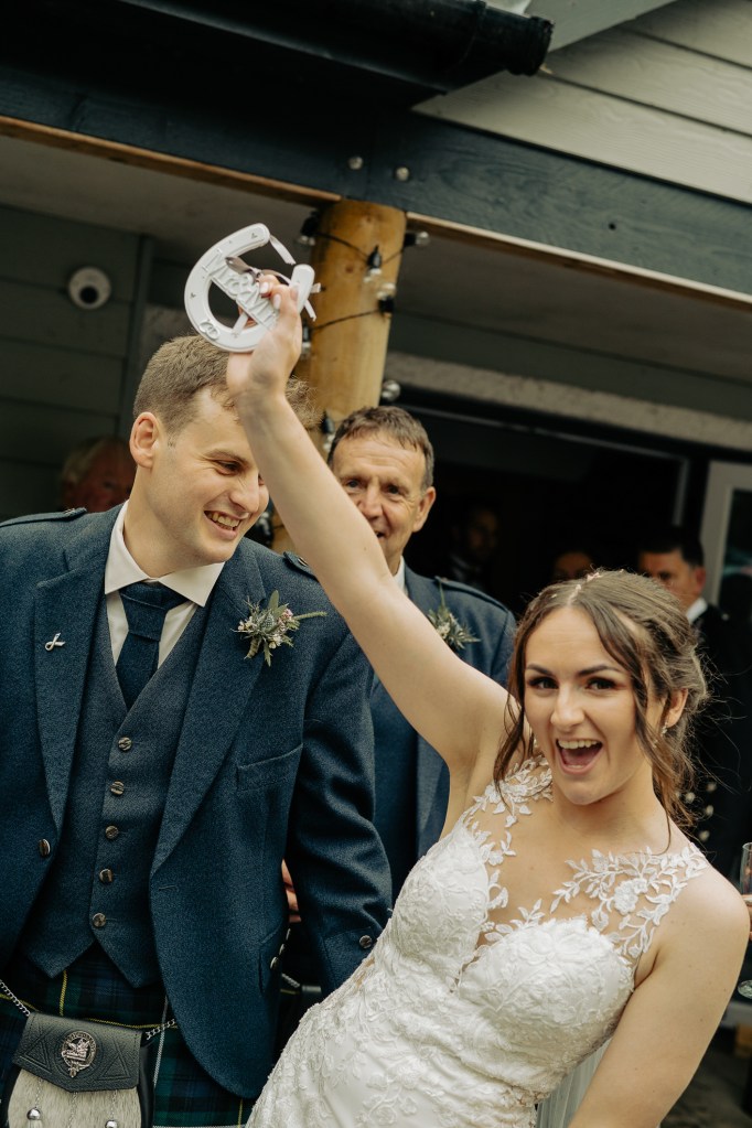 Their ceremony was led by the wonderfulLynn Munro, a humanist celebrant whose ceremonies are warm, genuine, and deeply personal. Lynn was being shadowed by the fun loving Nicky Marr Humanist. Nicky is absolutely lovely. Lynn has a way of holding space even in the wildest places. Lynn can guide you to such presence in your ceremony, she’s incredible. And true to her style, she kicked off her shoes and went barefoot into the pouring Highland rain, standing with us on the mossy bank of the loch, with the wind, the rain and the water rising gently at our feet. Lynn created a stunning ceremony, read the Irish blessing as a wee nod to Meg’s family: “May the road rise to meet you, May the wind be always at your back. May the sun shine warm upon your face, The rains fall soft upon your fields.“