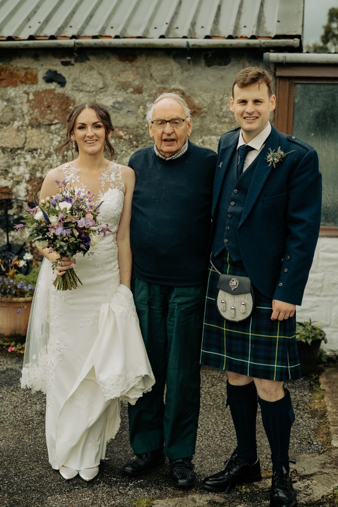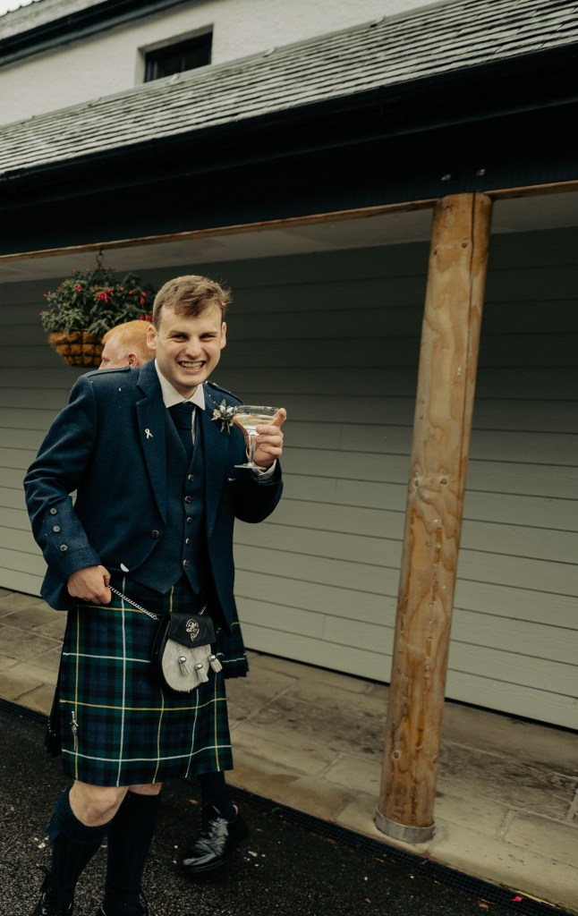 After the ceremony the couple wanted to make sure they got to chat with their guests so they had a few drinks, relaxed and mingled before we headed off to visit Alastair’s Grandpa at his home. Alastair’s Grandpa hadn’t been too well at the time so unfortunately couldn’t make the wedding ceremony but he was absolutely brilliant fun when we arrived at his farm to see him – I was warned beforehand that I wasn’t to mention who my Connel family connections were because we had limited time and he’d keep us there all day haha what a laugh they had with him. He was making fun of them when I was taking a few shots by the classic Red Telephone Box…always wanted to photograph a couple by one of these and he had one on this farm!
