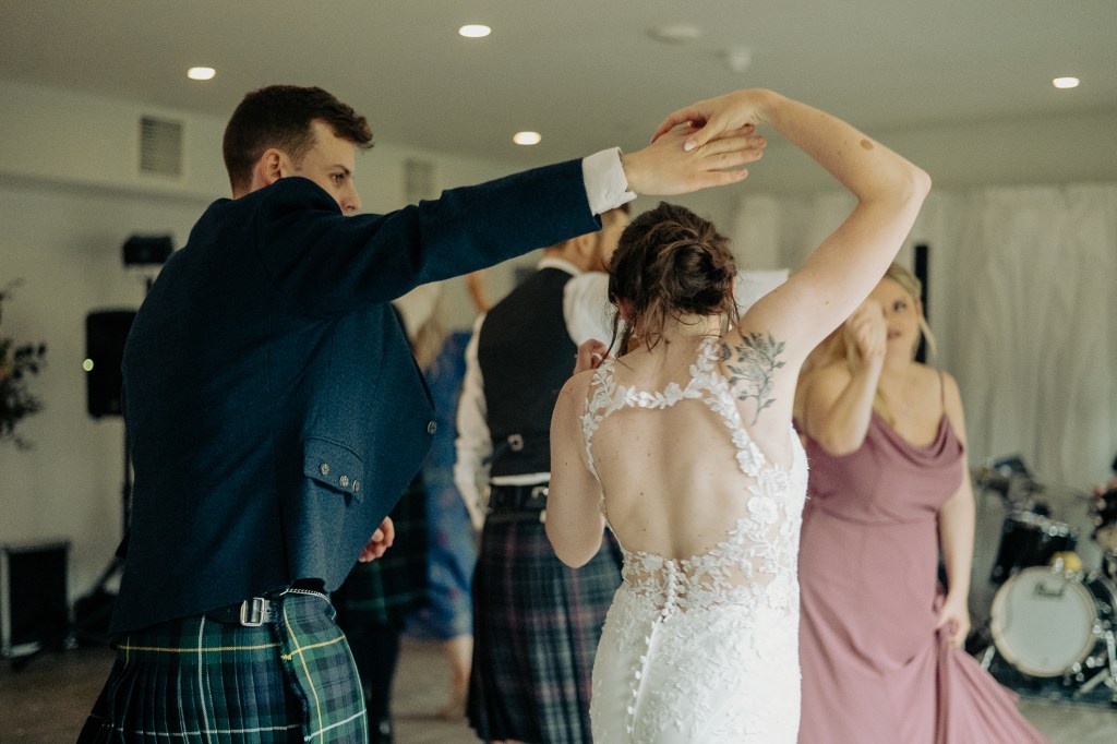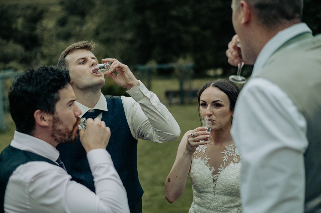 Meg and Sam chose to honour ancient Scottish traditions with a handfasting, their hands bound with tweed that Sams Mum has given them, this was a lovely touch, as they spoke their vows, rain falling softly between every word. They drank from the quaich, the cup of love and unity, sealing their promises with the old Scottish ways. It was raw, and real, and utterly beautiful. They also wrote personal vows which is such a stunning thing to do for each other. Just as Sam was about to read his, which were written on an Ullapool postcard, the wind picked up and nearly blew them away. With quick cat-like reflexes, Sam caught his vows, thankfully – phew!