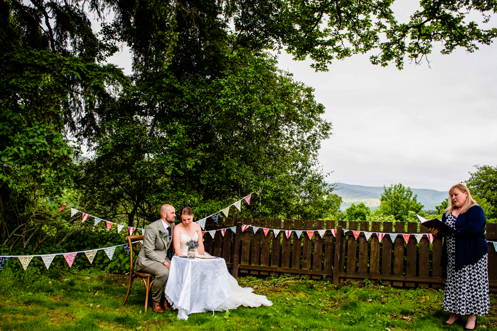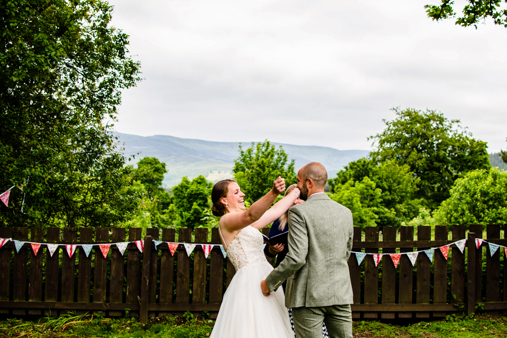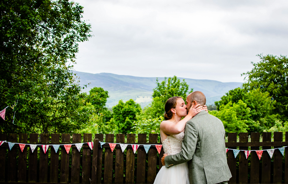 The joy of eloping is that your wedding is so wee there’s not too much to worry about. Rosie and Jon booked a beautiful holiday cottage in Ballater and they got married in the garden with the amazing views of the hills and the peaceful landscape, it was so beautiful.