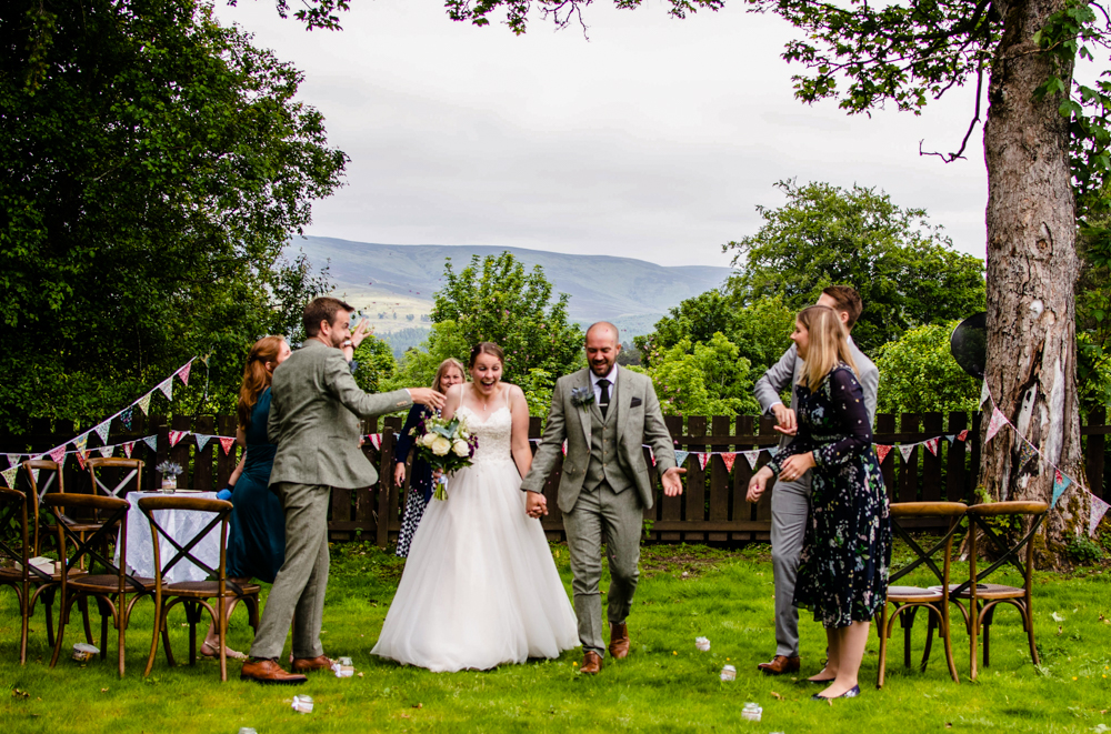 “We walked to the pub in our dresses and suits and finished the day in a hot tub in the garden where we got married. We’d do it all again tomorrow.“