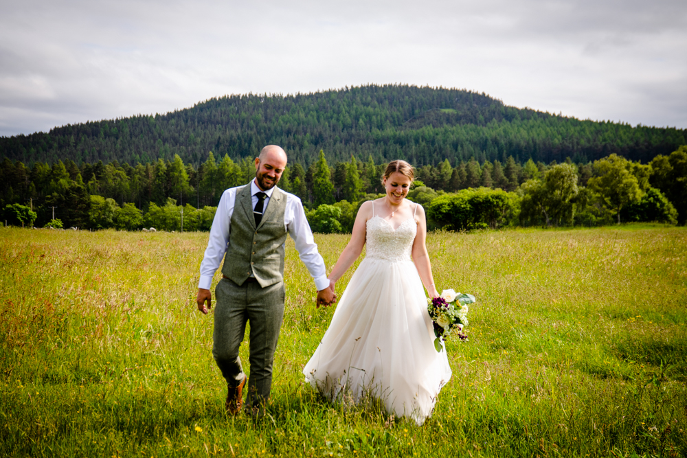 “Debbie was perfect for our wedding and we can’t recommend her enough…. We eloped to theCairngorms and only had five guests, so we hoped we’d get on well with our photographer – Debbie fitted in brilliantly on the day and felt like our sixth guest. She was happy to chat with everyone, help with buttonholes and always knew how to capture the day without the camera becoming the focus. We love Debbie’s eye for natural photography – our favourite shots were when we had no idea they were being taken! She was happy to lace up her boots and trample around in the forest or balance on stepping stones in the river to get the right angle – she even went the literal extra mile to capture our walk into Ballater for dinner. We love the finished photographs – Debbie had taken our thoughts and ideas and added her own style and expertise to make a perfect memory. We treasure the physical photos and Debbie made it so easy to share the digital versions with friends and family online. The short film of video clips was a brilliant addition that we’d never thought of but are so grateful to have. In short, Debbie was the perfect choice and we’d tell anyone looking for a recommendation to ask if she’s available at once!”